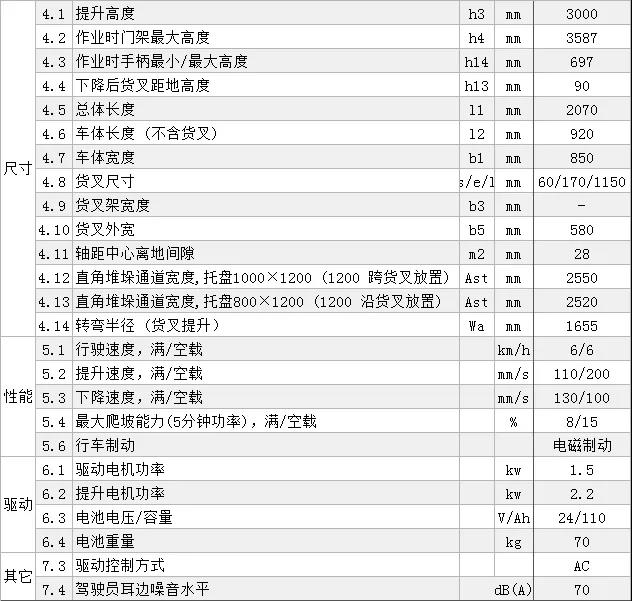 技術參數表: